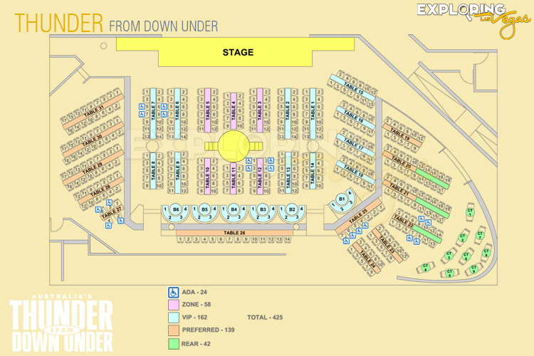 Buy Thunder From Down Under Tickets Get a Thunder Down Under Package Quote See Our Thunder From Down Under Packages See Our Las Vegas Hotel Prices Get a Custom Hotel Quote